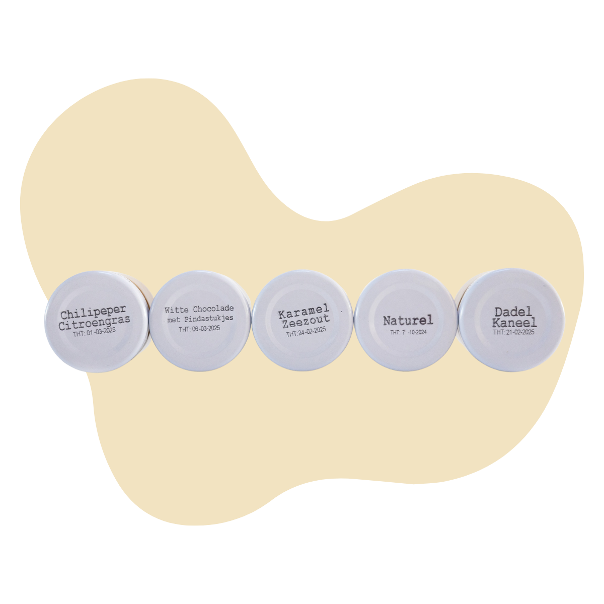 De verschillende soorten pindakaas zitten in potjes van 40 ml in een cadeauverpakking. Ook leuk om cadeau te doen aan een andere Pindabaas!