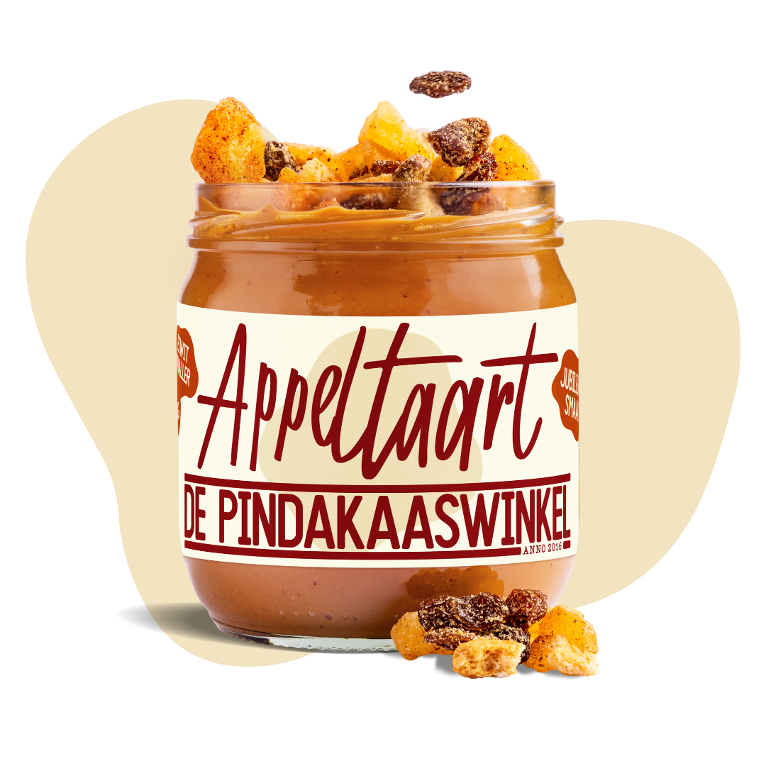 De smaak combineert onze vertrouwde basis met stukjes appel, rozijnen, kaneel en knapperige koek. Perfect voor op een boterham, door je havermout of gewoon met een lepel uit de pot.