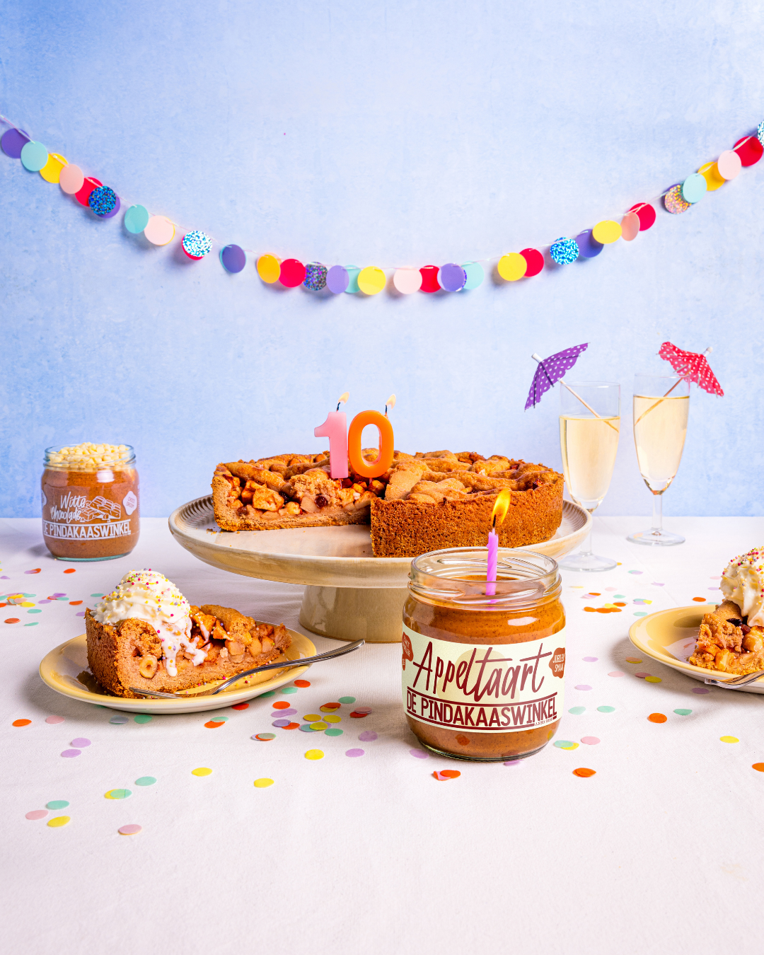 Al tien jaar maken we met liefde en aandacht de allerlekkerste pindakaascombinaties. Dat jubileum vieren we natuurlijk op onze manier: met taart! En niet zomaar een taart, maar onze appeltaart special, de populairste special van de afgelopen 10 jaar. Speciaal voor dit jubileum is deze overheerlijke smaak het hele jaar verkrijgbaar.