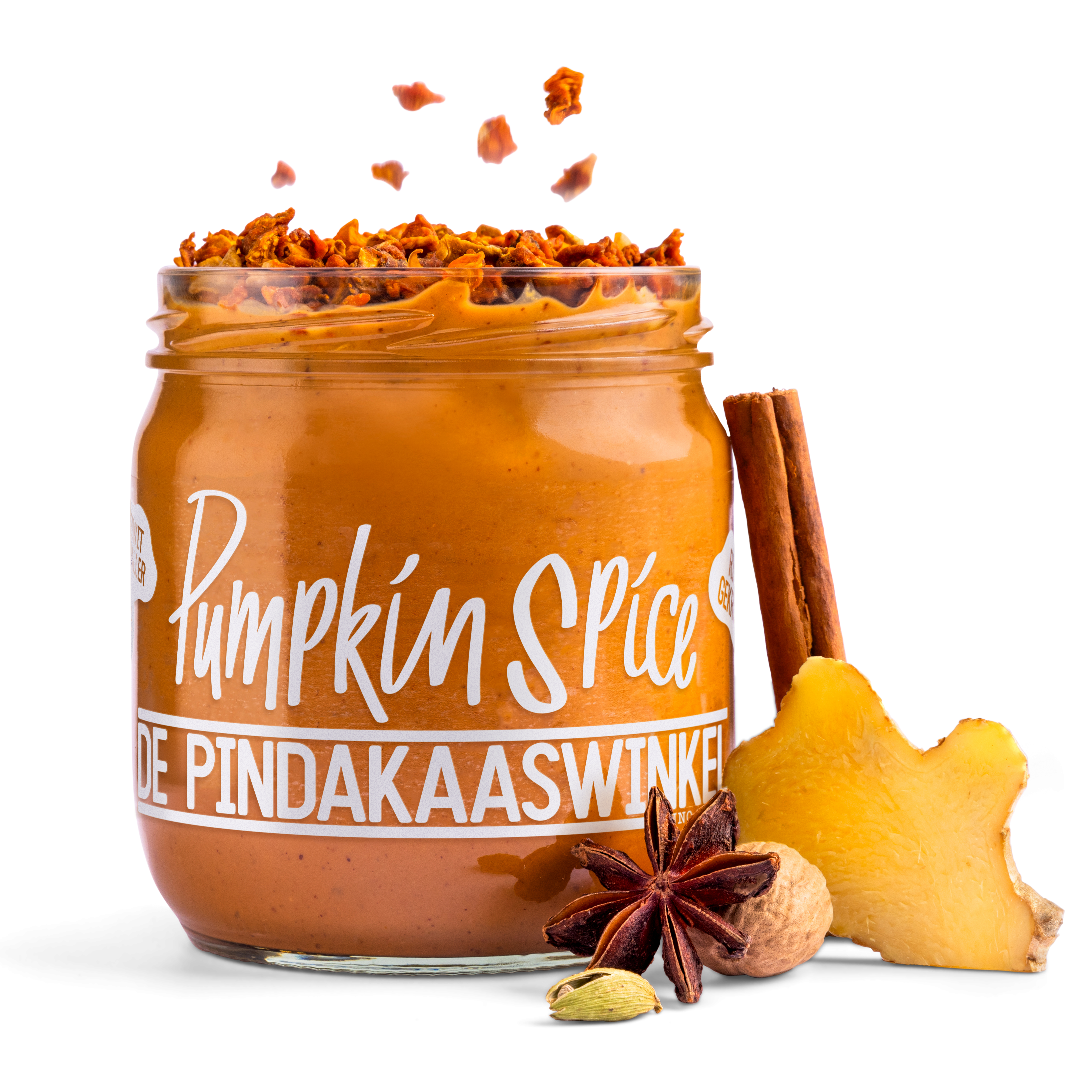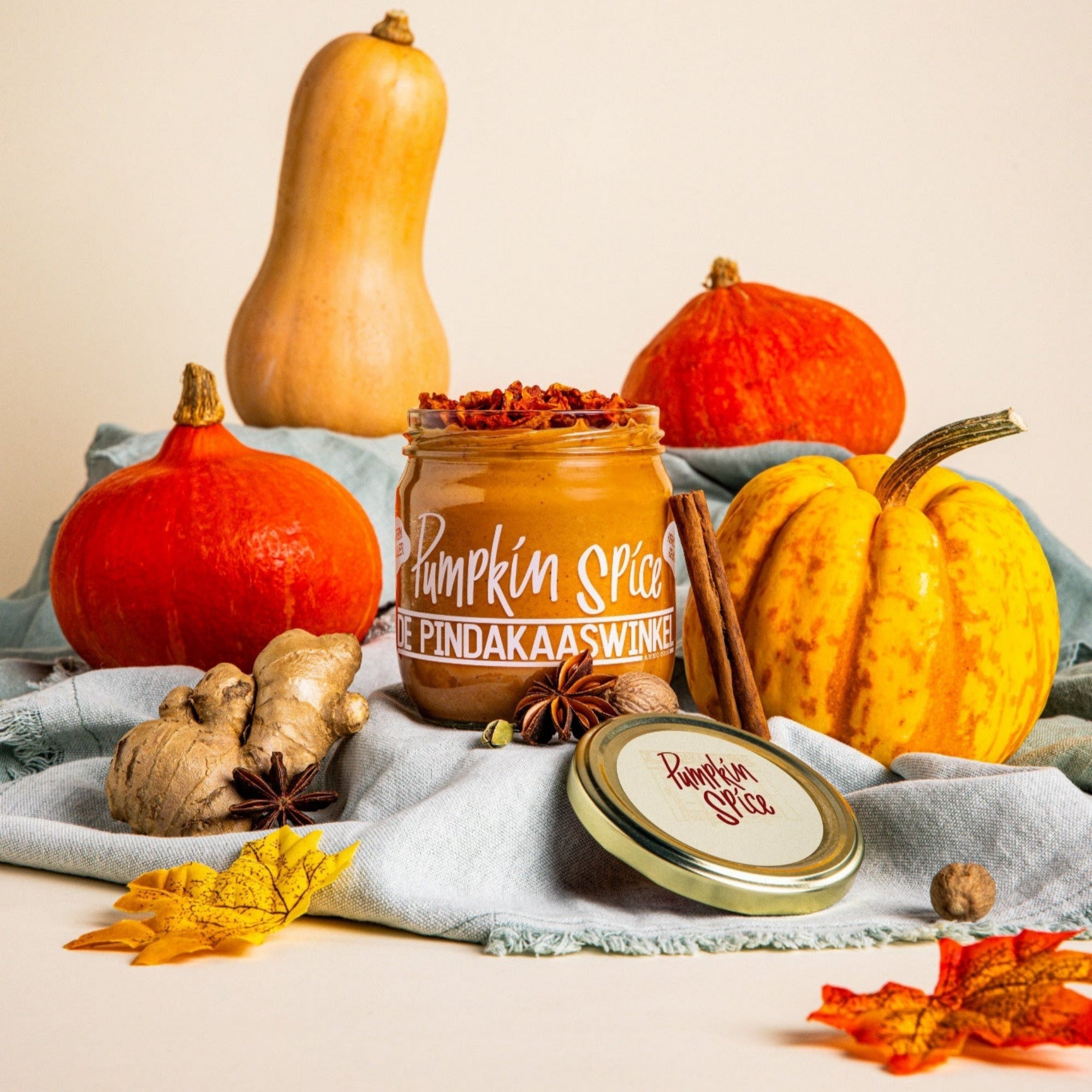 Ons favoriete herfstspecerijenmengsel met kaneel, nootmuskaat en een vleugje kruidnagel nu in een heerlijk potje pindakaas met stukjes pompoen. Deze Pumpkin Spice Pindakaas is perfect om je havermout, pancakes of warme drankjes een kruidige twist te geven en natuurlijk onweerstaanbaar in combinatie met pindakaas.