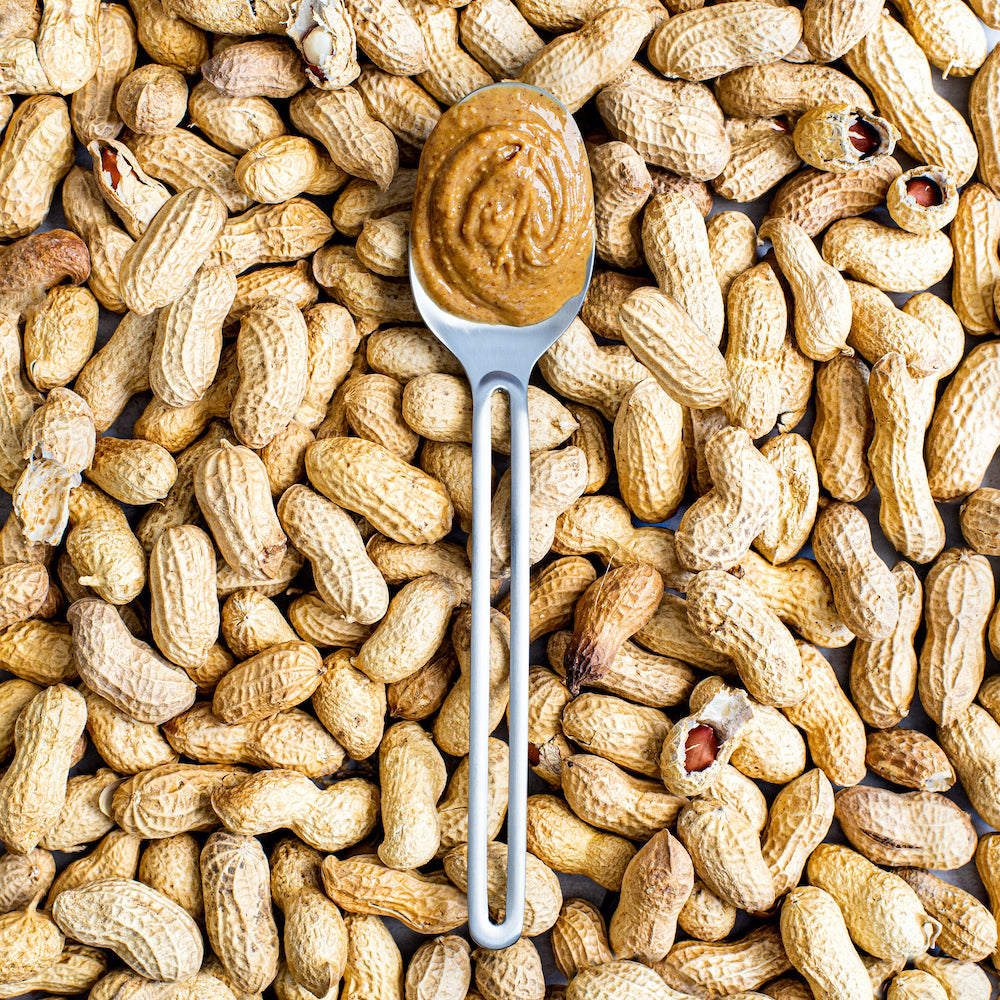 Onze naturel pindakaas is onze basis en moet de lekkerste pindakaas zijn die je ooit hebt gegeten. De pinda’s komen uit Argentinië in de regio van Cordoba en zijn de lekkerste die wij geproefd hebben. Onze naturel pindakaas is gemaakt van bijna 100% pinda's, zonder toegevoegde suikers of kunstmatige toevoegingen. Pinda’s zijn een uitstekende bron van gezonde vetten, eiwitten (25% ADH/100g) en vitamine E (12% ADH/100g). Daarnaast bevat deze pindakaas een klein beetje zout, wat de nootachtige smaak van de pinda’s perfect versterkt zonder de natuurlijke smaak te overstemmen. Ook gebruiken we een heel klein beetje kokosolie (minder dan 2%) om het mondgevoel iets aangenamer te maken en daarmee doen we een gooi naar de lekkerste pindakaas ter wereld!